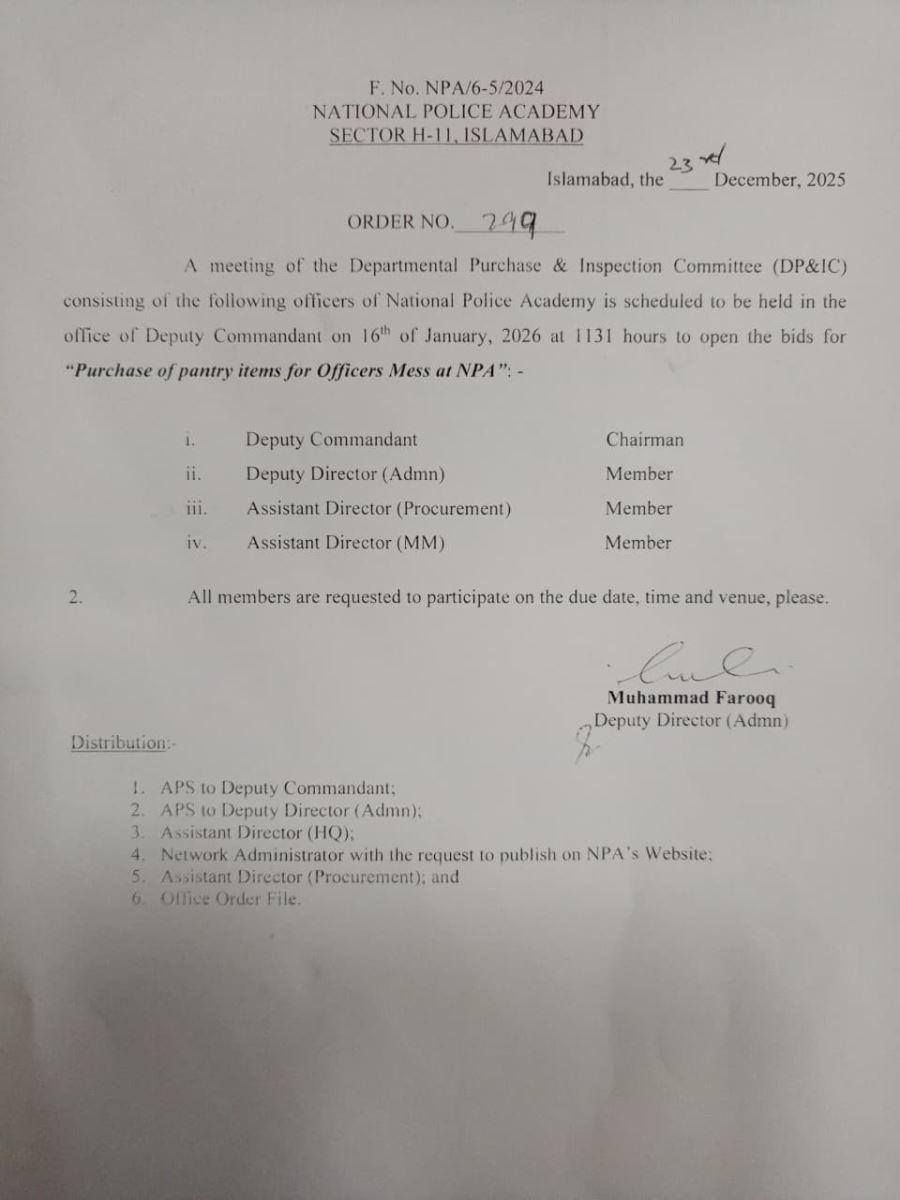Purchase of pantry items for Officers Mess at NPA